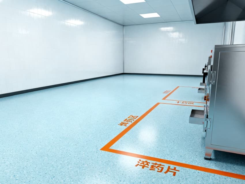 車間整體遵循醫(yī)藥級潔凈設(shè)計標(biāo)準(zhǔn),地面采用淺藍(lán)色抗菌防滑環(huán)氧地坪,通過無縫一體化施工工藝,徹底消除藥渣殘留隱患與衛(wèi)生死角,其卓越的耐腐蝕性與易清潔特性,能夠從容應(yīng)對中藥清洗、切制等高頻清潔作業(yè);四周白色防塵抗菌墻面經(jīng)過特殊工藝處理,具備優(yōu)異的光線漫反射性能,搭配頂部科學(xué)布局的柔和照明系統(tǒng),既保證操作人員能夠清晰觀察藥材炮制過程中的性狀變化,又為生產(chǎn)環(huán)境構(gòu)筑起一道潔凈無菌的安全屏障。