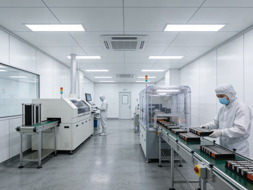 凈化系統與專項防護,保障環境穩定。通風凈化采用“初效+中效+H13級高效”三級過濾系統,核心生產區換氣次數控制在20-30次/小時,氣流呈亂流狀態均勻覆蓋,高效過濾器安裝后做PAO掃描檢漏,漏風率≤0.1%。配備高精度溫濕度控制系統,將溫度穩定在22±2℃、濕度45%-65%,避免溫濕波動影響器件精度與性能。全區域配備靜電釋放樁、防靜電手環接口,設備接地電阻≤1Ω,照明采用無眩光、無粉塵污染的平板燈,規避光線干擾與微粒產生。
