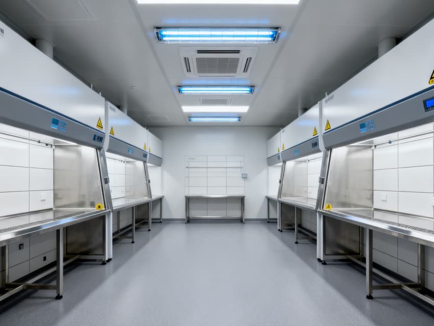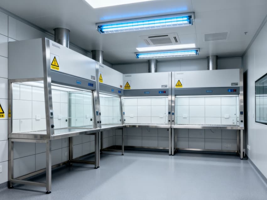 潔凈度執(zhí)行萬級標(biāo)準(zhǔn)(ISO8級),配置生物安全型空氣凈化系統(tǒng),確保每小時(shí)20次空氣置換與99.99%微粒過濾效率。