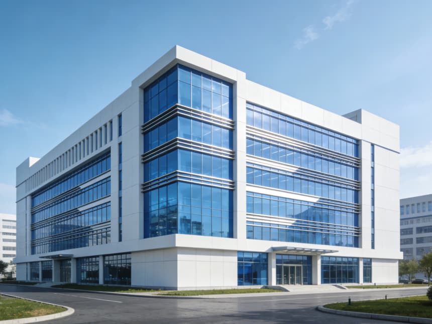 本次研發(fā)空間適配各類技術研發(fā)、實驗測試等場景需求。研發(fā)樓外立面采用玻璃幕墻搭配淺灰色金屬線條,通透大氣的同時保障室內采光,入口設專屬門廳,彰顯研發(fā)場所的嚴謹性與科技感。
