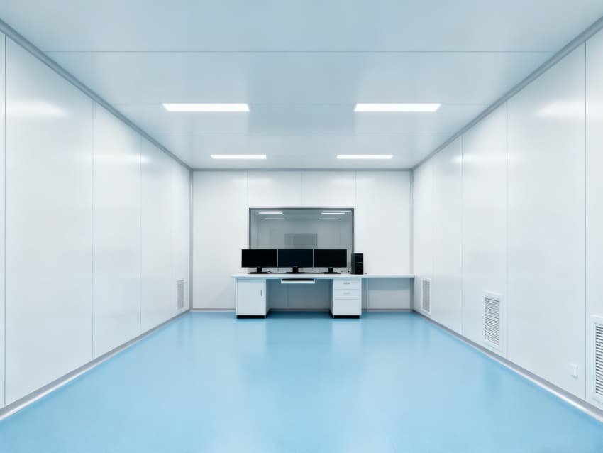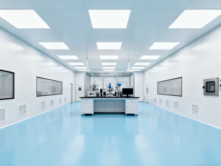 車間環(huán)境控制優(yōu)勢顯著:地面采用淺藍(lán)色防靜電環(huán)氧材質(zhì),有效規(guī)避靜電對量子元件的干擾;四周白色抗菌墻面經(jīng)特殊涂層處理,粉塵附著率低于0.1%,配合全密封吊頂設(shè)計,可維持千級潔凈度,滿足量子器件對微環(huán)境的極高要求。?