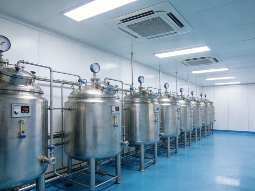 生物制藥生產廠房內部以藍色醫用級地面搭配白色潔凈墻壁為統一基調,嚴格遵循GMP最高等級無菌規范及生物安全二級(BSL-2)標準,適配單抗、疫苗、重組蛋白、細胞治療藥物等各類生物制藥產品的研發與生產,構建全流程無菌、可控、合規的生產環境,兼顧生物安全性、工藝適配性與操作規范性。