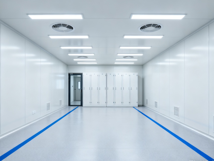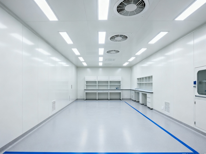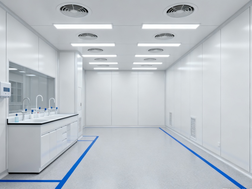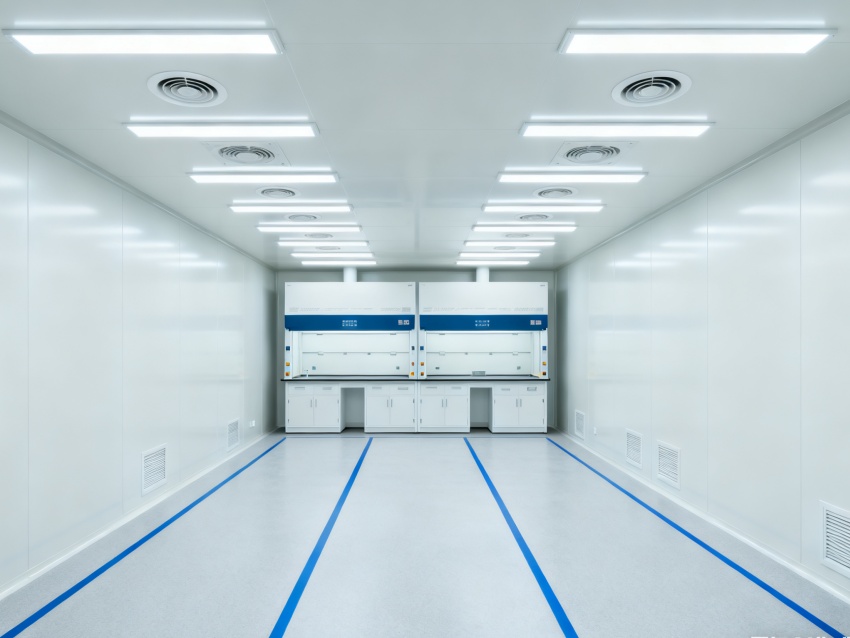 實(shí)驗(yàn)室潔凈度嚴(yán)格遵循萬(wàn)級(jí)標(biāo)準(zhǔn)(ISO8級(jí)),每立方米空氣中≥0.5μm微粒數(shù)≤352000個(gè),采用初效-中效-高效三級(jí)空氣過(guò)濾系統(tǒng),配合垂直層流送風(fēng)設(shè)計(jì),實(shí)現(xiàn)每小時(shí)20-25次空氣置換。室內(nèi)墻面采用耐腐蝕潔凈彩鋼板,地面為PVC無(wú)菌卷材,所有接縫做密封處理;溫度控制在22±2℃、相對(duì)濕度50±5%RH,部分區(qū)域維持5-8Pa負(fù)壓,有效防止交叉污染,符合生物安全實(shí)驗(yàn)室建設(shè)規(guī)范。
