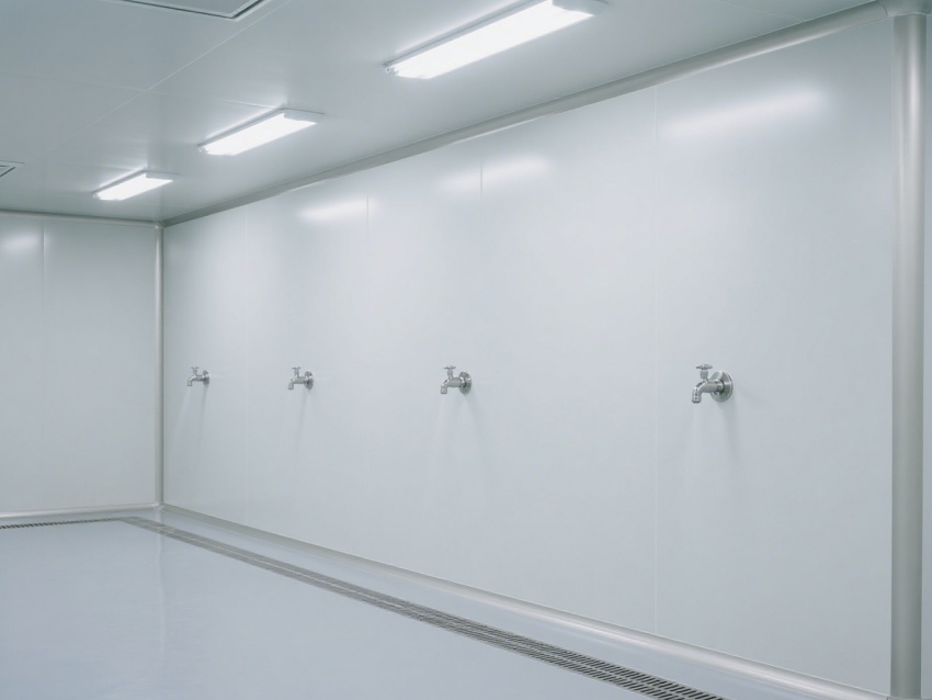 效果圖從不同視角展現(xiàn)空間優(yōu)勢:正面視角呈現(xiàn)開闊的通透格局,無設(shè)備干擾更顯規(guī)整;角落特寫聚焦圓弧墻角與無縫拼接工藝,規(guī)避積塵死角;側(cè)視角度凸顯層流送風(fēng)系統(tǒng)與高效過濾裝置,直觀傳遞潔凈技術(shù)核心;局部細(xì)節(jié)圖則清晰展示地面防滑紋理、墻面抗污涂層等實(shí)用設(shè)計(jì)。?