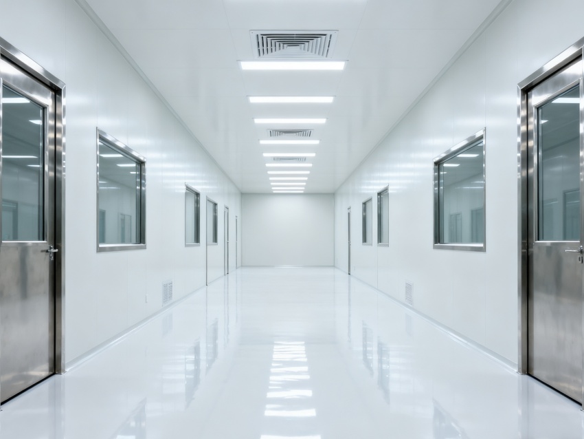 該芯片生產(chǎn)潔凈車間凈化裝修工程,專為芯片的高精度制造打造。車間采用高等級(jí)潔凈設(shè)計(jì),墻面、地面為無(wú)縫抗菌材質(zhì),搭配均勻明亮的LED照明系統(tǒng),營(yíng)造出一塵不染的生產(chǎn)環(huán)境。