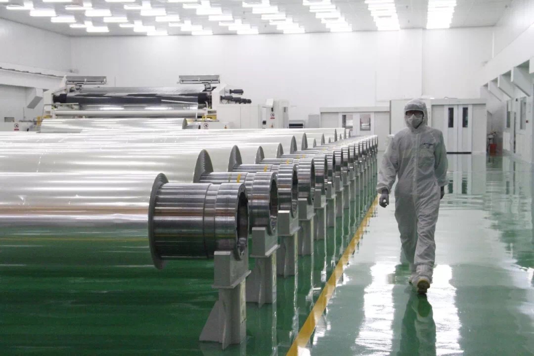 整個(gè)車間生產(chǎn)環(huán)境達(dá)到萬級(局部千級),配備有在線瑕疵檢測、化學(xué)除塵和靜電除塵等功能。產(chǎn)品主要應(yīng)用于平板顯示領(lǐng)域的擴(kuò)散膜、增亮膜、反射膜的基膜、各種保護(hù)膜及太陽能光伏背板膜等。