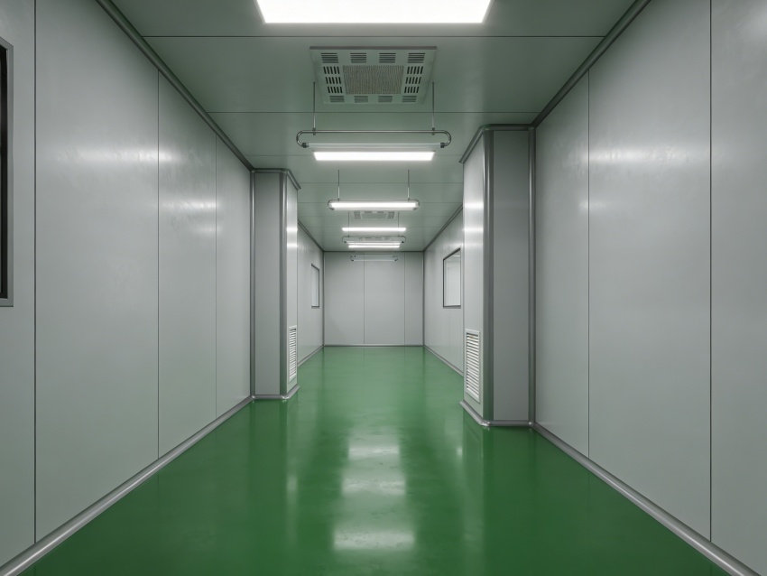 內(nèi)部生產(chǎn)車間均以綠色抗菌潔凈地坪搭配灰色工業(yè)級無縫墻面,形成鮮明且適配行業(yè)的視覺基調(diào)。綠色地面選用食品級抗菌環(huán)氧材質(zhì),具備強(qiáng)耐磨、抗酸堿腐蝕及易消殺特性,可耐受發(fā)酵液、清潔劑等殘留清理,同時(shí)助力緩解操作人員視覺疲勞;灰色墻面采用抗菌涂層無縫拼接,搭配圓弧墻角設(shè)計(jì),徹底消除清潔死角,減少微生物附著滋生。