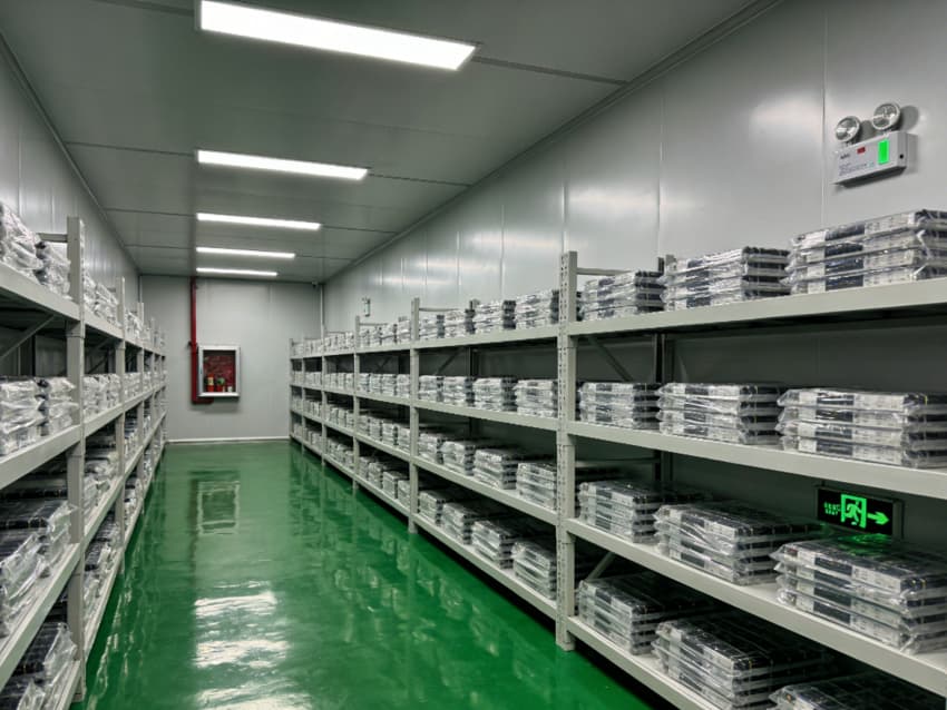 • 老化篩選區針對自動化測試設備的密集排布,優化了吊頂通風與地面承重設計,確保設備長期穩定運行;倉儲區則通過重型貨架與密封式物料存儲設計,實現原材料與成品的潔凈管控。