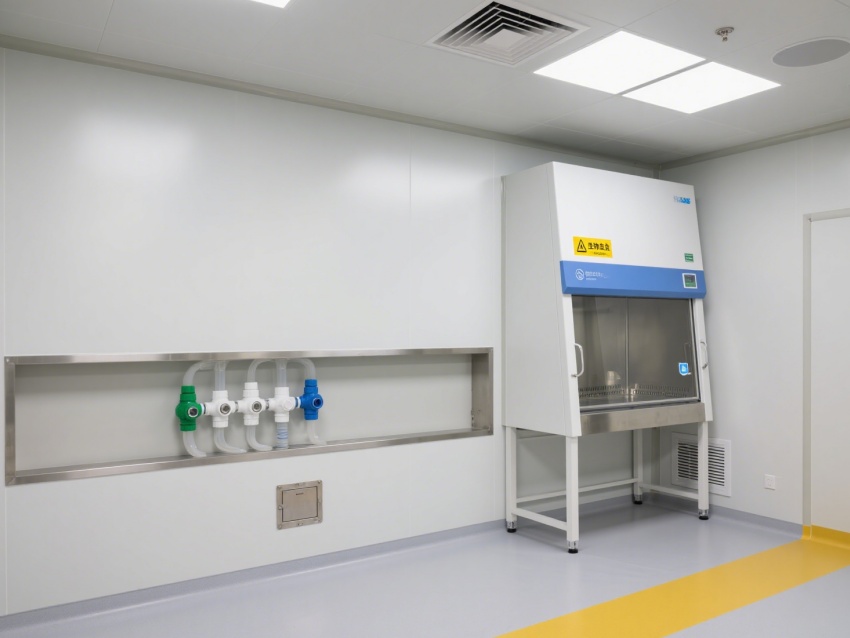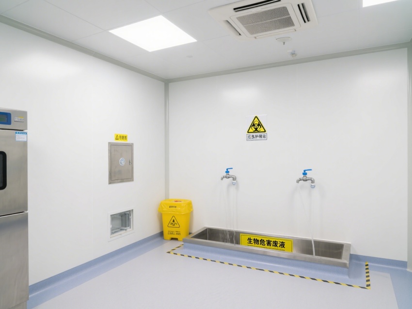 內(nèi)部設(shè)施專業(yè)且完善,生物安全柜為實(shí)驗(yàn)操作提供無菌防護(hù);各類氣路、水路接口布局規(guī)范,滿足檢測過程的資源供應(yīng);配備應(yīng)急沖眼設(shè)施與生物危害廢液處理區(qū),保障實(shí)驗(yàn)安全。空間設(shè)計(jì)注重潔凈與防護(hù),墻面、地面為無縫抗菌材質(zhì),便于消毒滅菌,黃色警示線清晰劃分功能區(qū)域,各類監(jiān)控儀表實(shí)時顯示溫濕度、壓差等關(guān)鍵參數(shù),確保實(shí)驗(yàn)環(huán)境穩(wěn)定可控。
