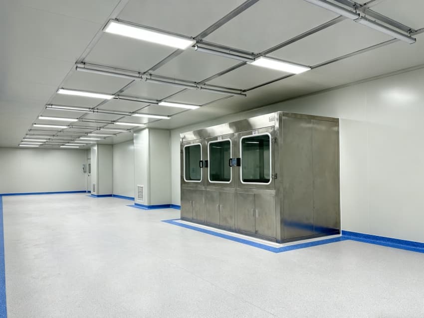 內(nèi)部潔凈車間按電子元件生產(chǎn)流程,劃分成原料凈化區(qū)、精密組裝預(yù)備區(qū)、檢測過渡區(qū),各區(qū)域以密封式通道銜接,適配芯片、電路板等產(chǎn)品生產(chǎn)需求。車間潔凈度執(zhí)行萬級標(biāo)準(zhǔn)(ISO8級),每立方米空氣中≥0.5μm微粒數(shù)≤352000個,通過初效-中效-高效三級過濾系統(tǒng),結(jié)合頂送底回氣流組織,實現(xiàn)每小時22次空氣置換。墻面用防靜電潔凈彩鋼板,地面為環(huán)氧樹脂自流平,溫度穩(wěn)定在23±2℃、濕度45±5%RH,有效避免灰塵、靜電影響產(chǎn)品質(zhì)量,符合電子行業(yè)生產(chǎn)規(guī)范。